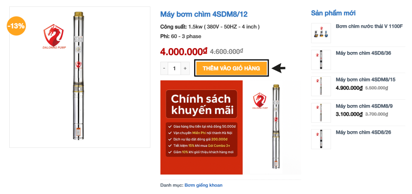 Tại trang sản phẩm, lựa chọn số lượng và nhấp nút “THÊM VÀO GIỎ HÀNG”.